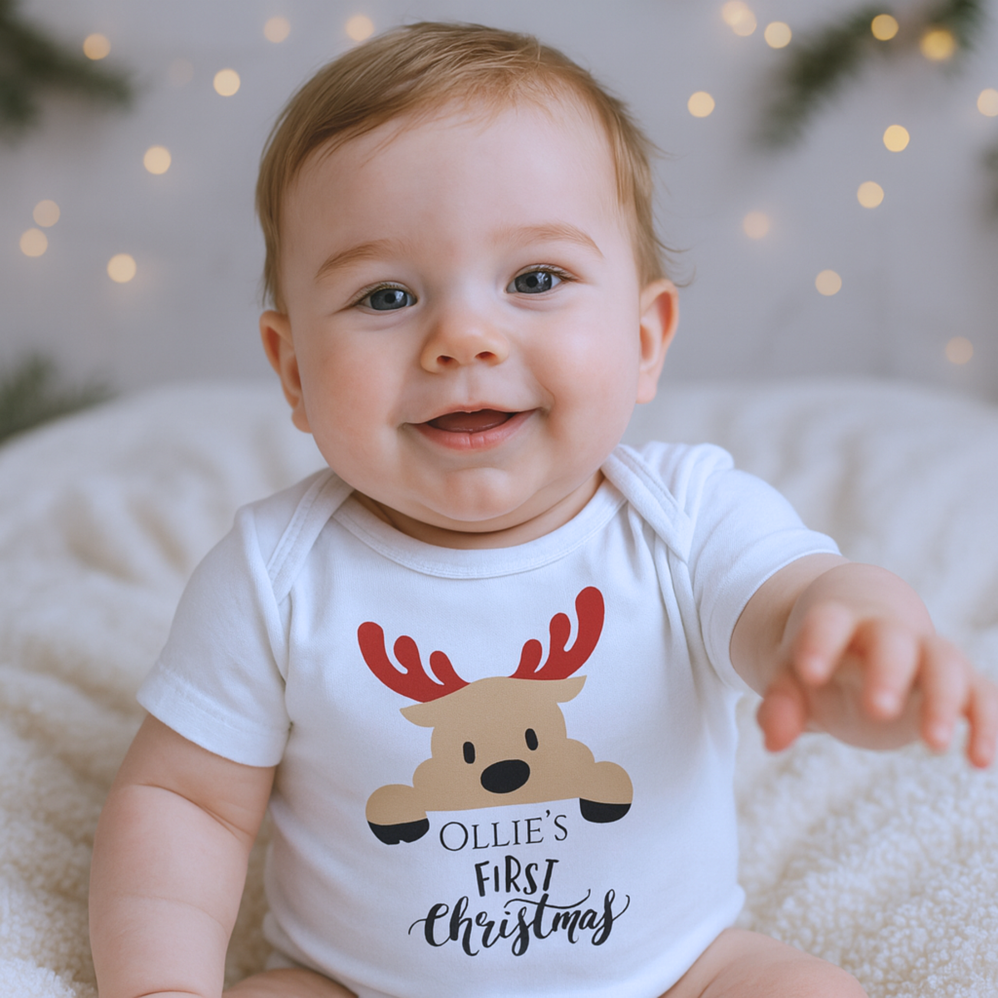 My First Christmas Personalised Name Onesie and Romper and Custom Color for Christmas Photoshoot